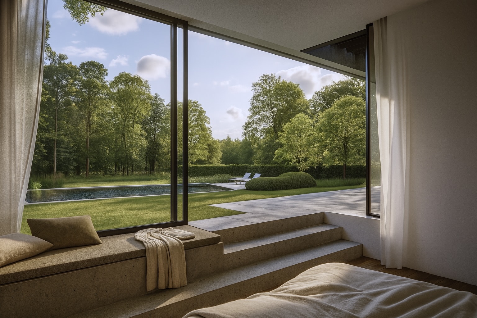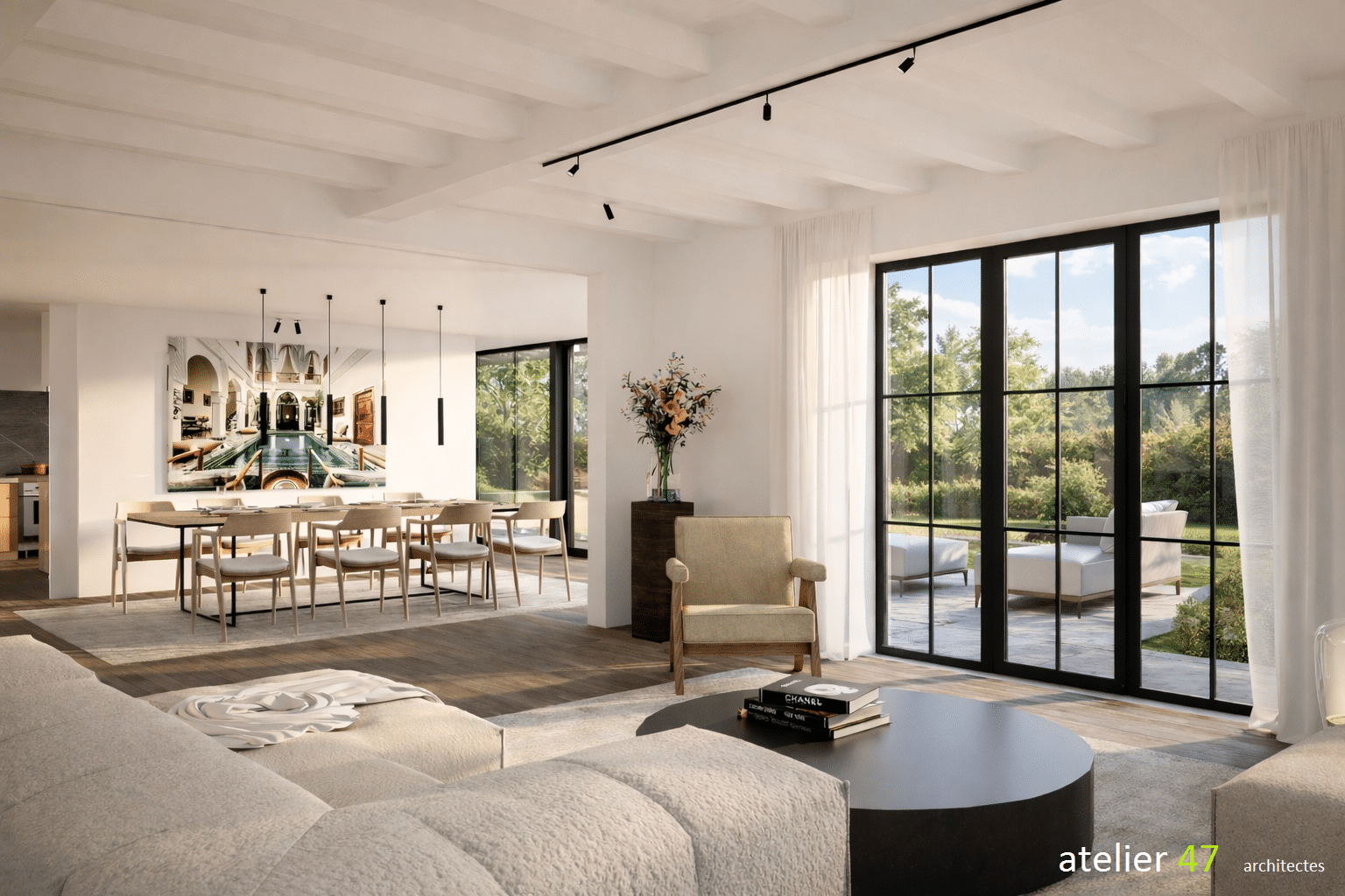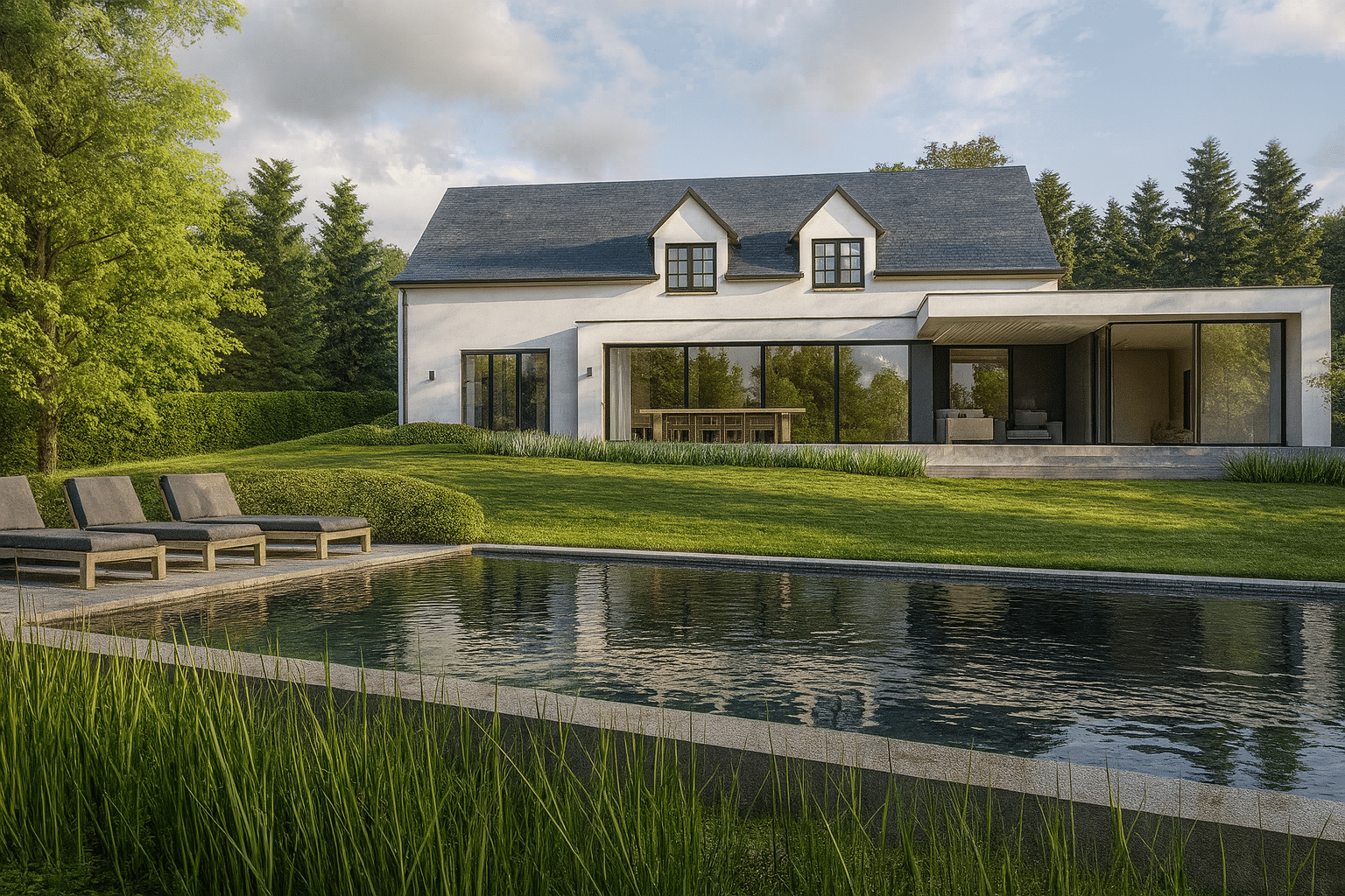 Derrière la fluidité et la légèreté visuelle du projet se cache une véritable complexité structurelle. Les volumes contemporains exigent des porteurs précis et discrets, capables de soutenir l’ouverture des façades tout en conservant la transparence souhaitée. L’usage réfléchi de matériaux sobres et cohérents assure l’équilibre entre l’architecture originelle et l’extension contemporaine.