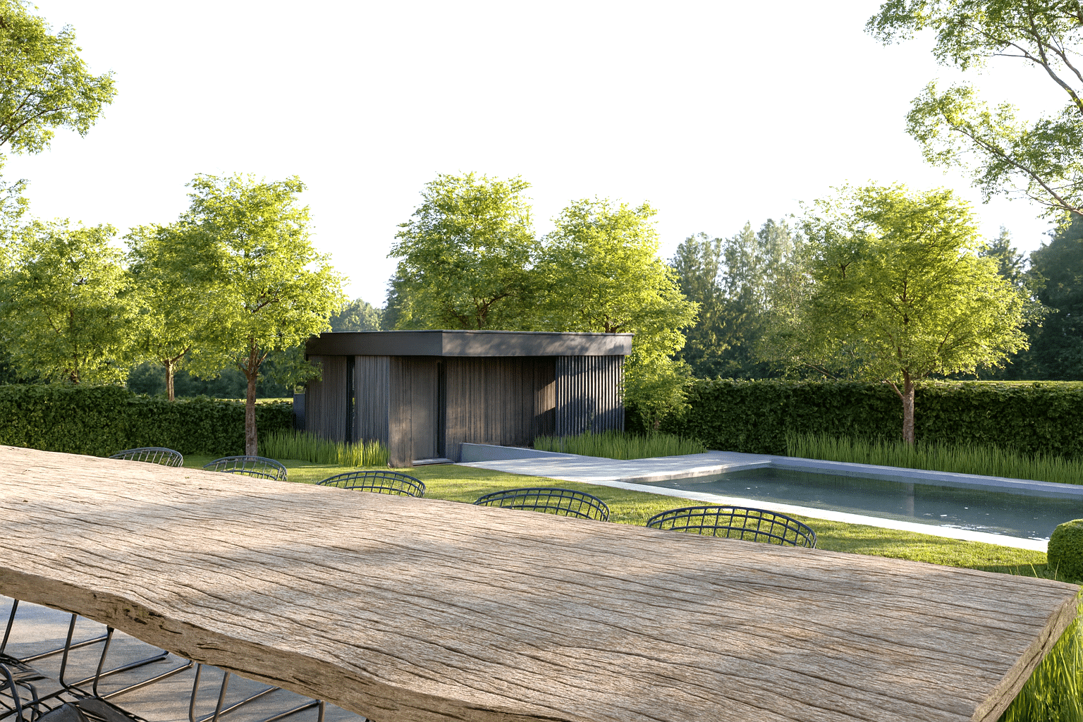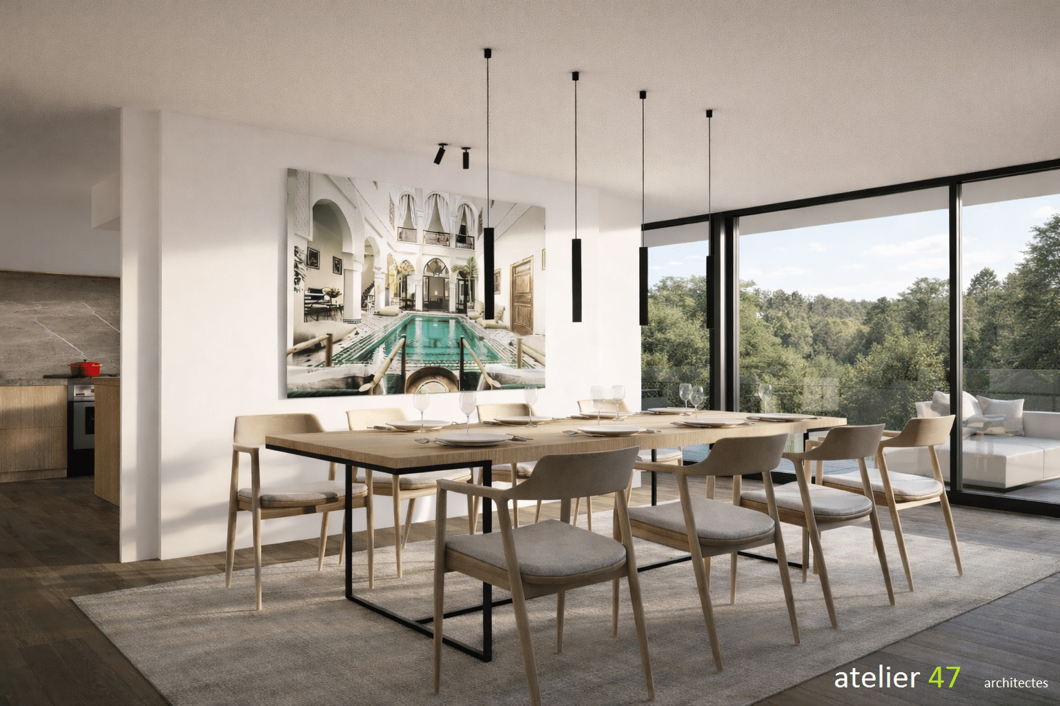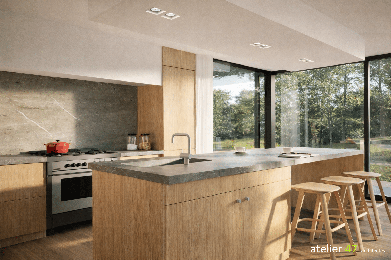 Derrière la fluidité et la légèreté visuelle du projet se cache une véritable complexité structurelle. Les volumes contemporains exigent des porteurs précis et discrets, capables de soutenir l’ouverture des façades tout en conservant la transparence souhaitée. L’usage réfléchi de matériaux sobres et cohérents assure l’équilibre entre l’architecture originelle et l’extension contemporaine.