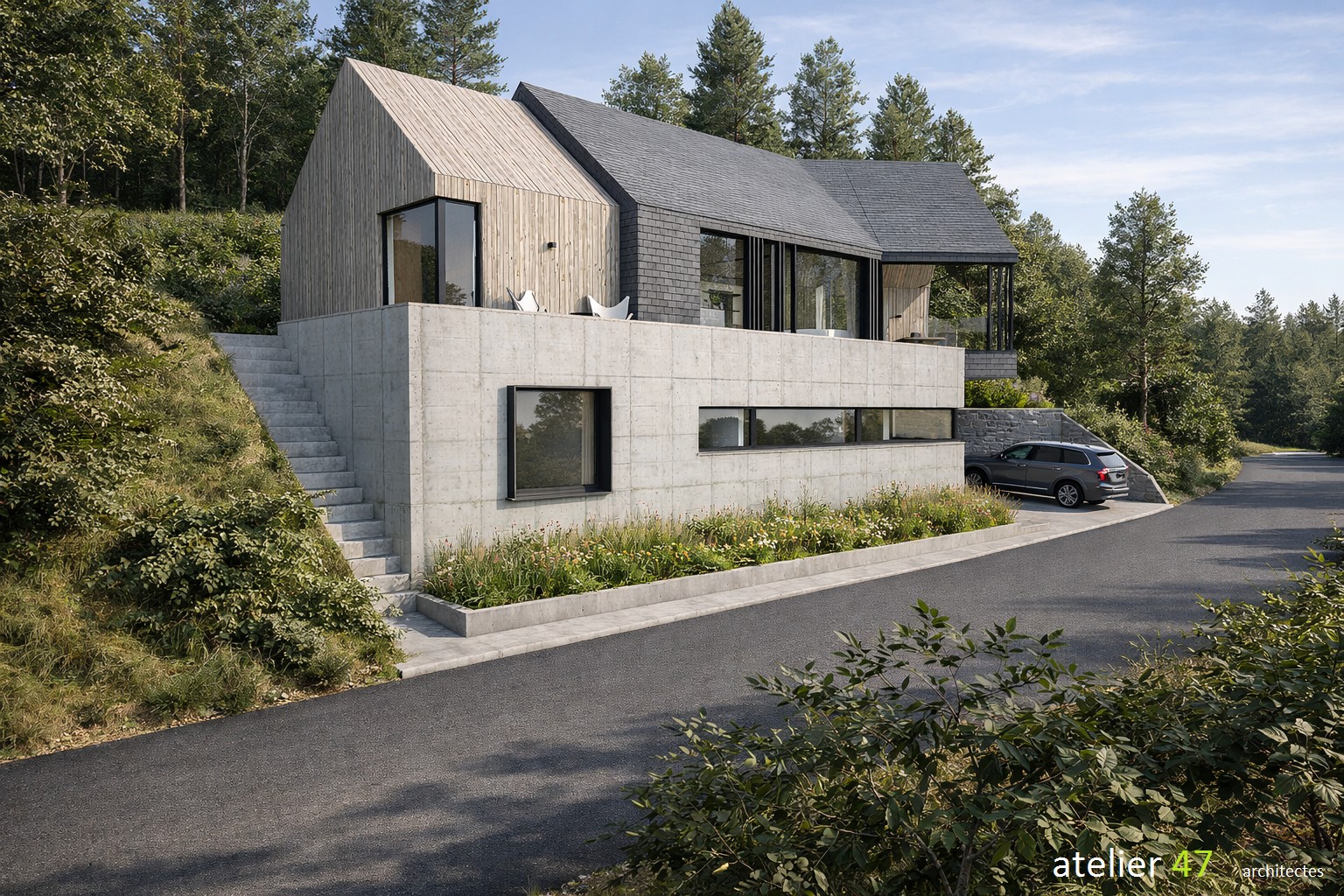 Depuis plus de vingt ans, Atelier 47 imagine et façonne des espaces où rigueur et sensibilité se rencontrent. Basé à Louvain-la-Neuve et actif en Wallonie comme à Bruxelles, notre cabinet d’architecture accompagne ses clients dans la création de lieux uniques, qu’il s’agisse de constructions neuves, de rénovations ou d’intérieurs sur mesure. Chaque projet naît d’un dialogue attentif, pour révéler lumière, matériaux et harmonie de l’ensemble.